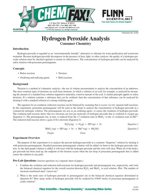 Read Analysis Of Hydrogen Peroxide Answers PDF